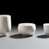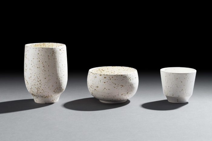 Emaillé int/ext, décor émail blanc satiné parsemé de sable pyrite.