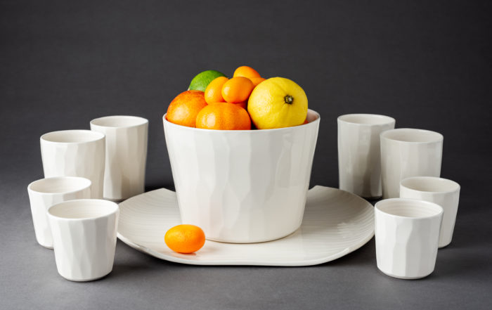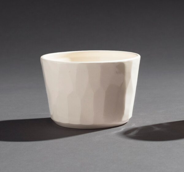 En faïence blanche tournée à la main.